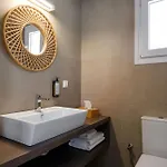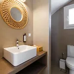 Les salles de bains d'une propriété en front de mer Twin Suns Luxury Villas comprennent également une douche à l'italienne et une toilette séparée. Un sèche-cheveux, des peignoirs de bain et des draps de bain font également partie des articles de toilette.
